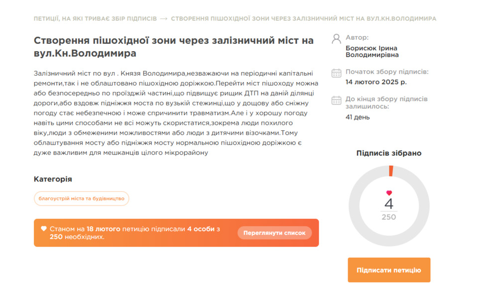 Зараз петицію підтримали четверо рівнян, збір підписів триватиме до кінця березня.