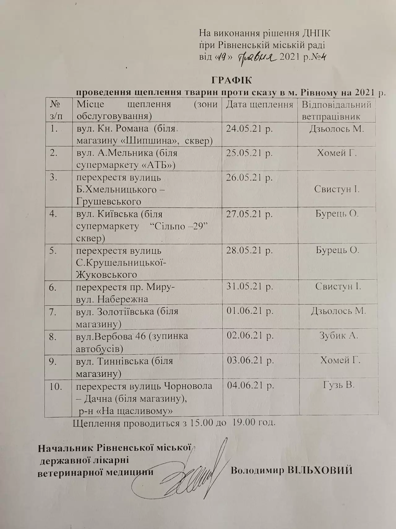З понеділка, 24 травня, у Рівному щеплюватимуть тварин від сказу.