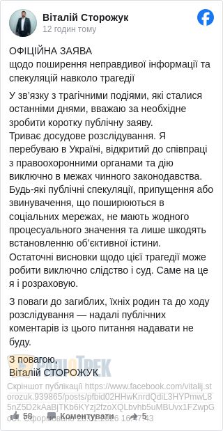 Остаточні висновки щодо цієї трагедії може робити виключно слідство і суд. Саме на це я і розраховую.