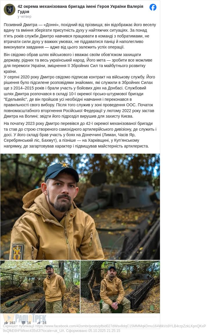 Фото відділення комунікацій 42 ОМБр імені Героя України Валерія Гудзя та з особистого архіву «Донні».