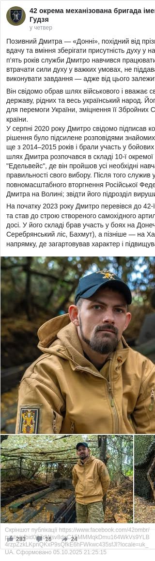 А на початку 2023 року Дмитро перевівся до 42 ОМБр Оперативного командування «Захід» та став до строю створеного самохідного артилерійського дивізіону, де нищить загарбників і досі.