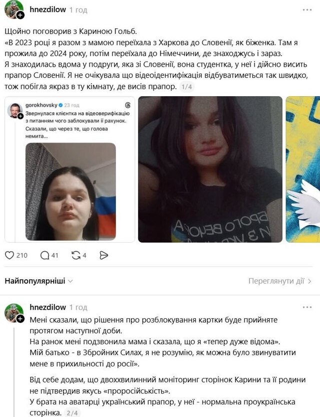 Втім, сама користувачка заперечила звинувачення виявилася біженкою з України, яка робила фото для верифікації перебуваючи у подруги в Словенії.