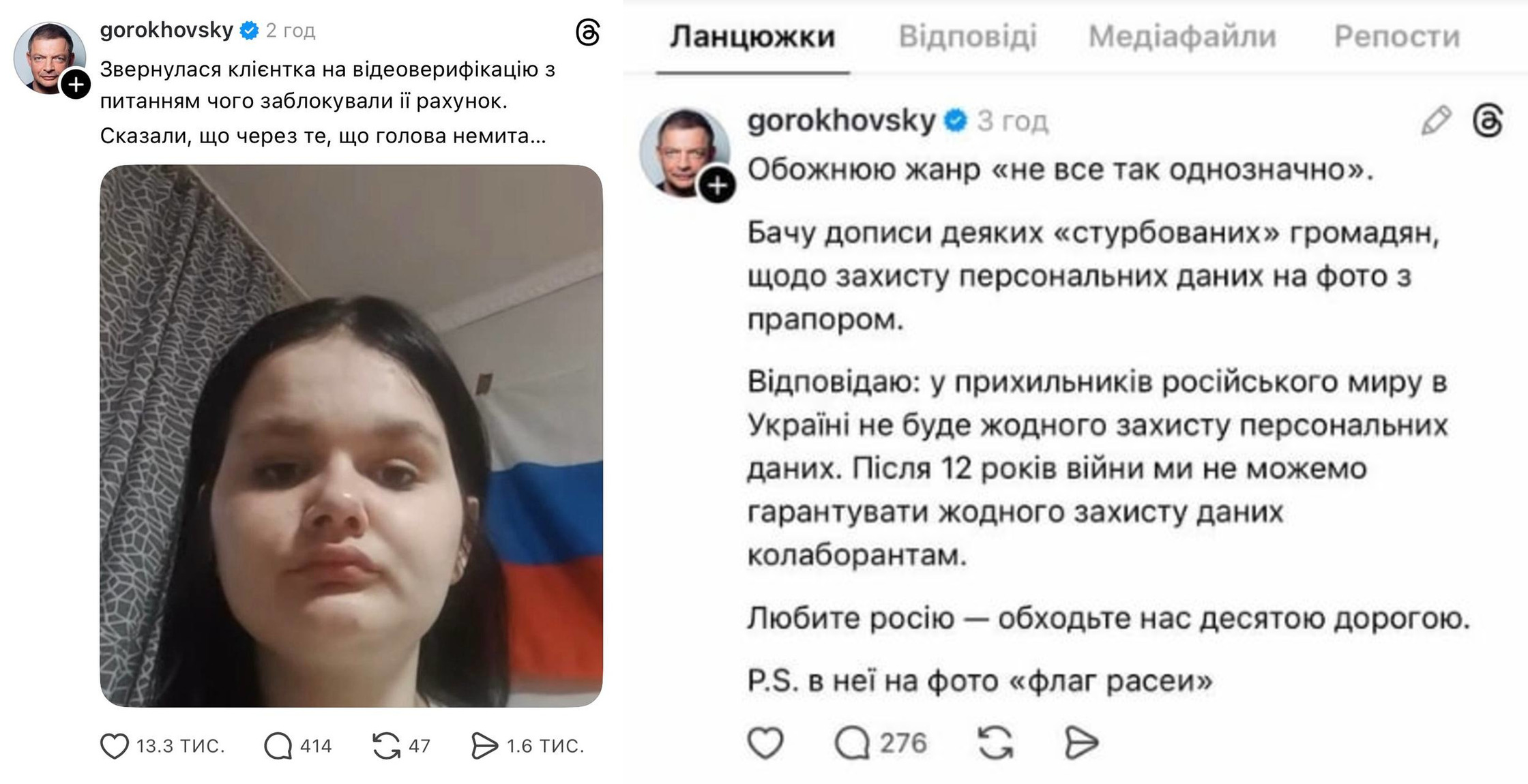 В усій цій дурній історії найбільш незрозумілим є ЩО змусило Гороховського йти за додатковим піаром у Threads?