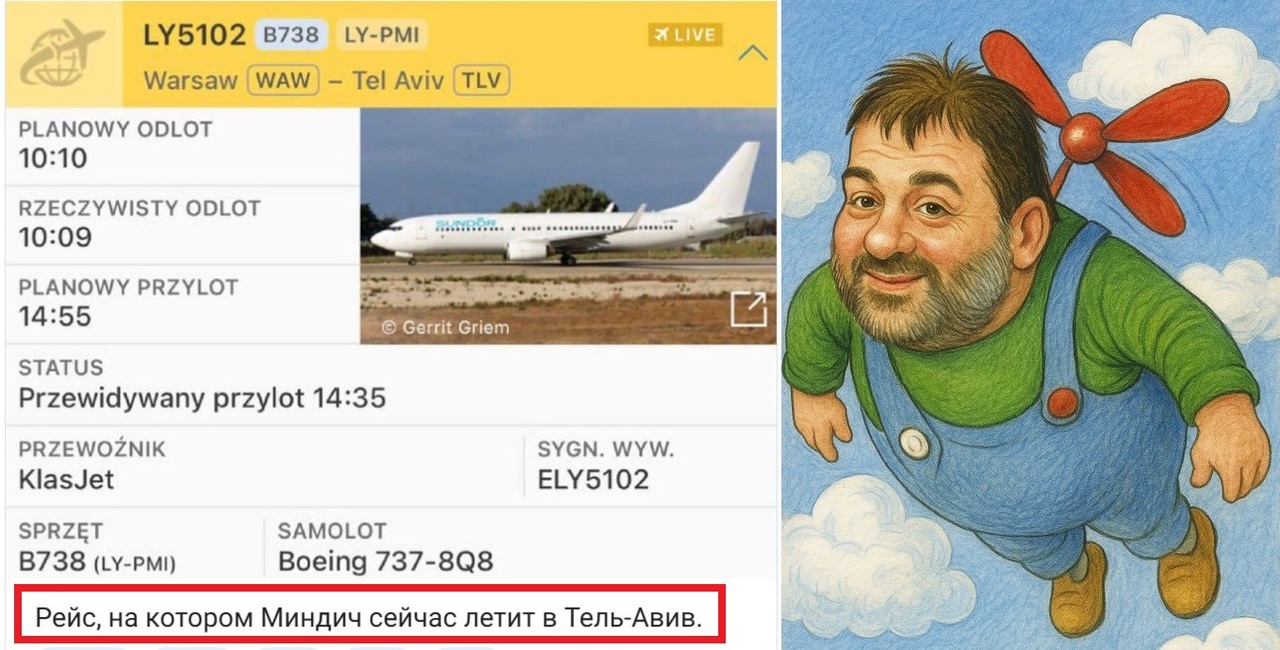 Щоправда, за деякими даними Міндіч ще вчора вилетів до Тель-Авіва рейсом із Варшави.