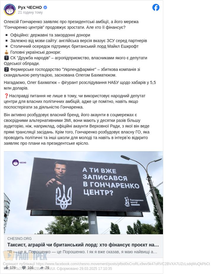 Повністю ознайомитися з цитованим матеріалом і дізнатися більше про Гончаренка, його спонсорів та центри можна ТУТ.