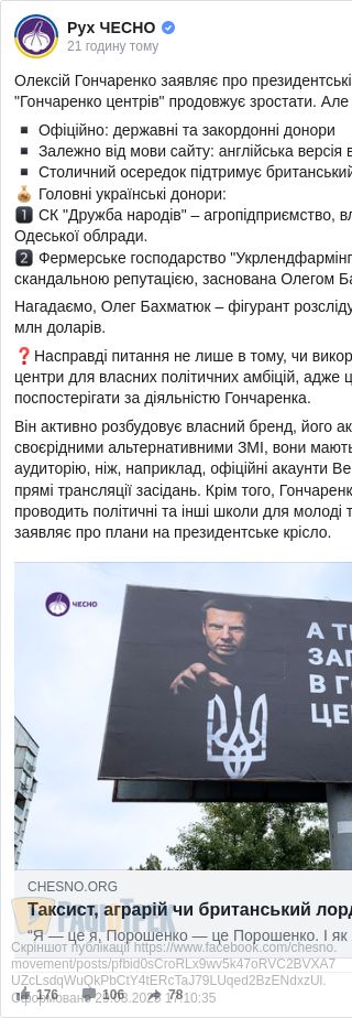Цікаво, що «Рух чесно» кинувся писати про Олексія Гончаренка як про ставленика латифундиста Бахматюка, але…