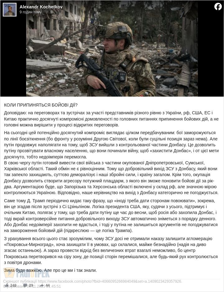 «Коли припиняться бойові дії», - говорить Кочетков (ФОТО)