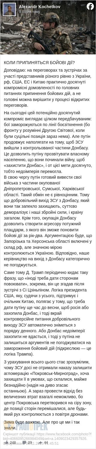 Його свіжий допис на ФБ зараз активно лайкють, коментують та репостять у соцмережах