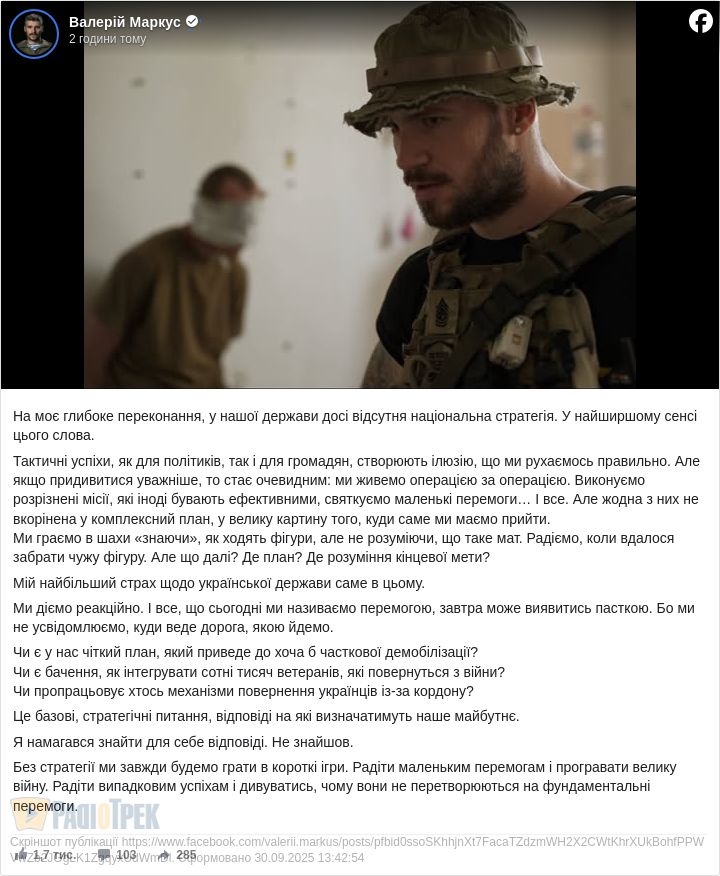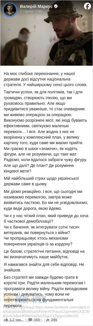 Мар’яна Безугла, роблячи репост допису Валерія Маркуса, зазначає: «Так і є. Давно про це кричу. Ще коли в 2023 поставила питання, де наш ПЛАН?»