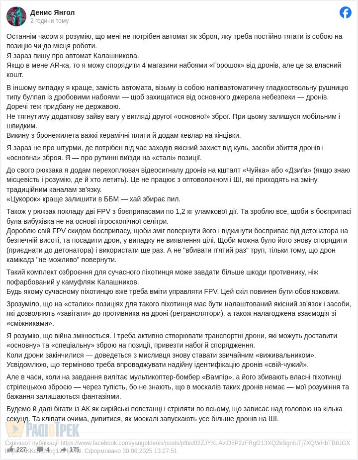 Будь якому сучасному піхотинцю вже треба вміти управляти FPV. Цей скіл повинен бути обов'язковим.