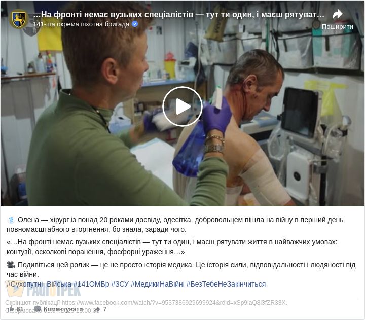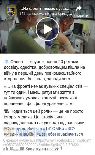 «Показухи на фронті немає. Всі хочуть вижити, і будуть робити для цього все можливе. Дуже часто ти навіть ще не встигла щось зробити як лікар, а просто подивитися в вічі: і людині стає легше навіть морально».