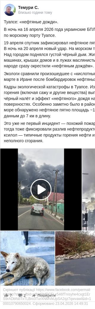 В інеті показують моторошні дими від нафти, що горить, і нафтопродуктів, які наводять на людей, що це бачать, справжній жах.