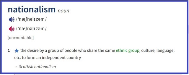 Націоналізм – бажання певної етнічної групи, яка має спільну культуру, мову тощо, створити власну державу/країну.