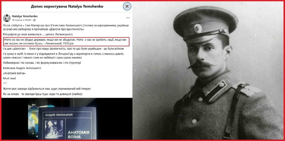 Це «очевидне» нагадала днями нам Natalya Yemchenko, навівши слова одного з ідеологів українського націоналізму – Вʼячеслава Липинського (поляка за народженням, українця за власним вибором):