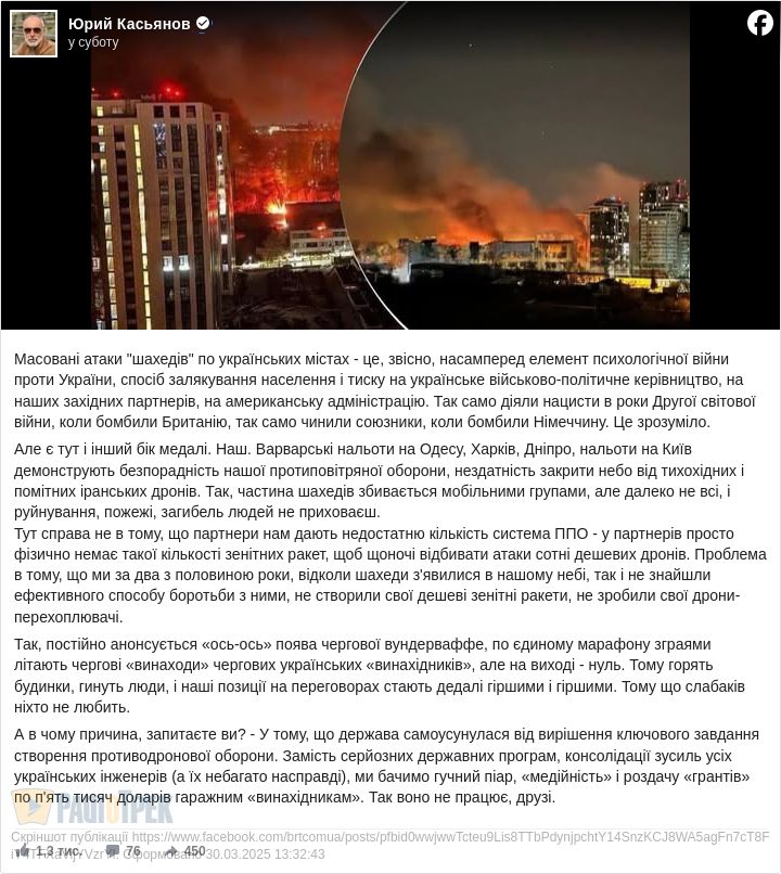 Росія скоро почне запускати по 600 «Шахедів» щоденно: де наше ППО? – запитує Касьянов (ФОТО)