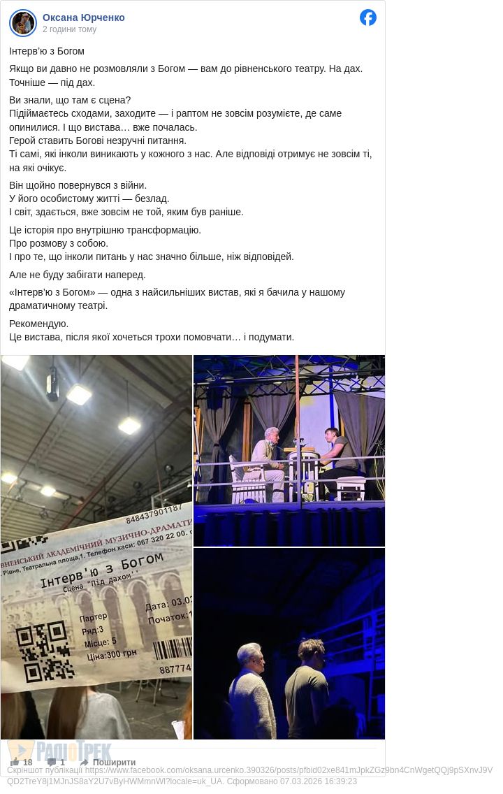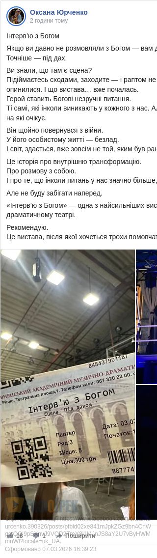 Оксана Юрченко побувала на особливій виставі Рівненського Академічного Театру.