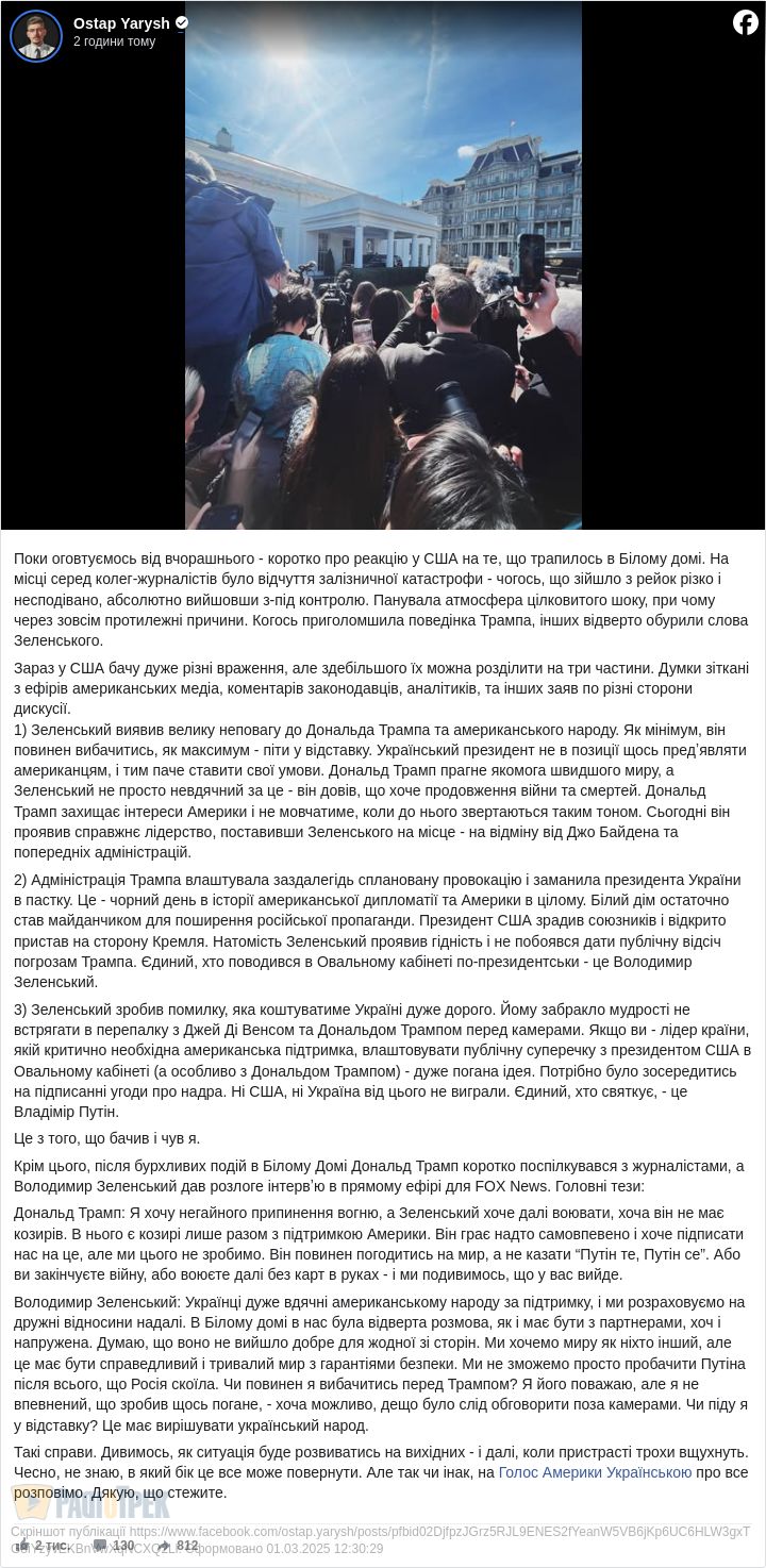 Остап Яриш – журналіст «Голосу Америки». Вчора він був з іншими колегами на заході в Білому Домі, коли події раптом почали розвиватися зовсім не за планом.