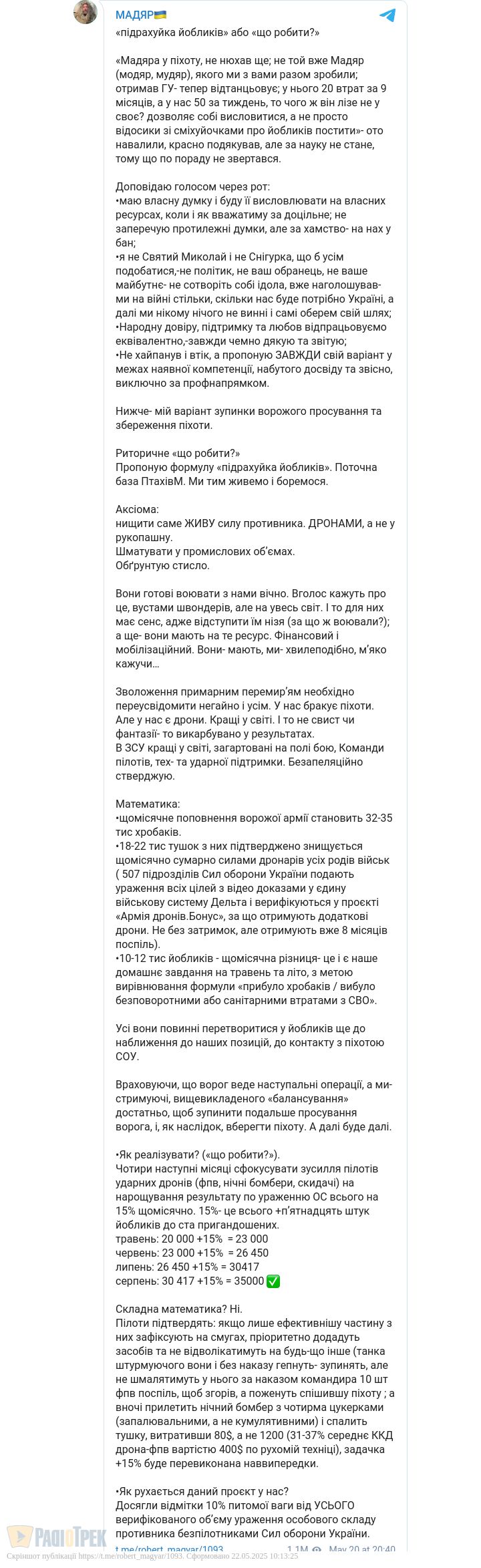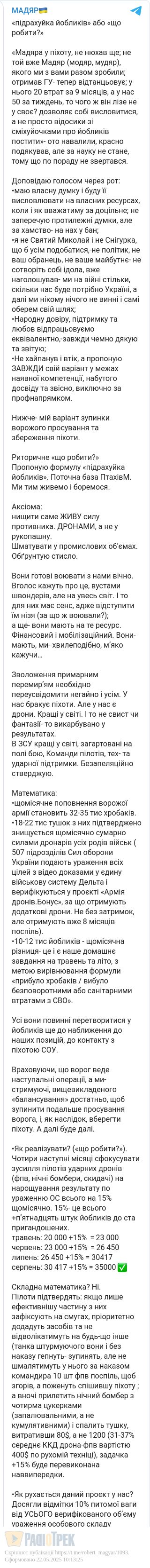 Днями «Мадяр» виступив з критикою – публічних наїздів на керівництво ЗСУ, одночасно пообіцявши написати про те – що насправді треба робити, аби зупинити ворожий наступ.