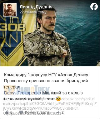 Оперативно-тактичним з’єднанням підрозділів «Азов» Національної Гвардії України командує полковник Денис «Редіс» Прокопенко.