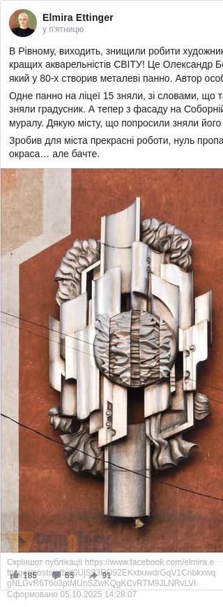 Люди в соцмережах активно поширюють цей допис, бо практично все місто було ПРОТИ демонтажу панно на будівлі біля ЦУМу, але...
