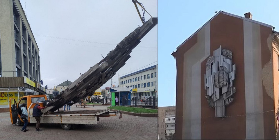 - Одне панно на ліцеї 15 зняли, зі словами, що там «голуби радянські», потім зняли градусник. А тепер з фасаду на Соборній, 15 зняли його панно заради муралу.