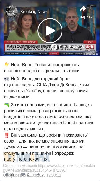 Двоюрідний брат Венса воював за Україну у складі «Вовків да Вінчі». Звати героя Нейт Венс, французьке видання Le Figaro першим зробило з ним інтерв’ю.