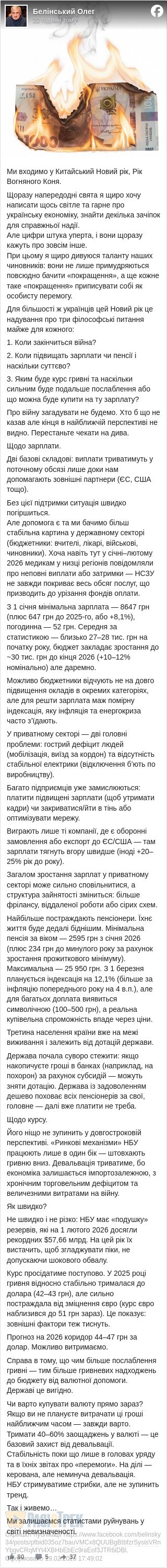 От що пише Олег Белінський: