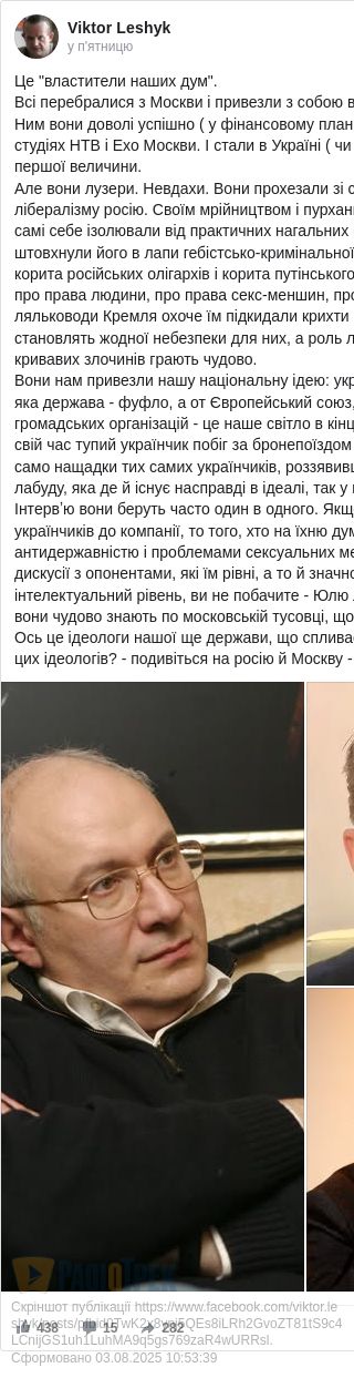 Ось це ідеологи нашої ще держави, що спливає кровʼю. Що буде далі від діянь цих ідеологів? - подивіться на росію й Москву – це і їхніх рук доробок.