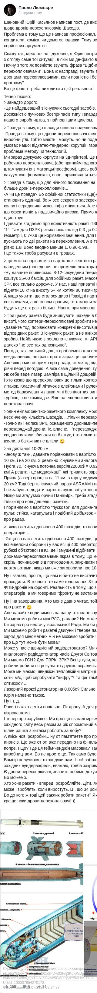 Одним словом, повністю текст Паоло ми подаємо нижче, а зараз допис когось із боліт, хто теж переймається проблемою БПЛА, але вже – наших, українських: