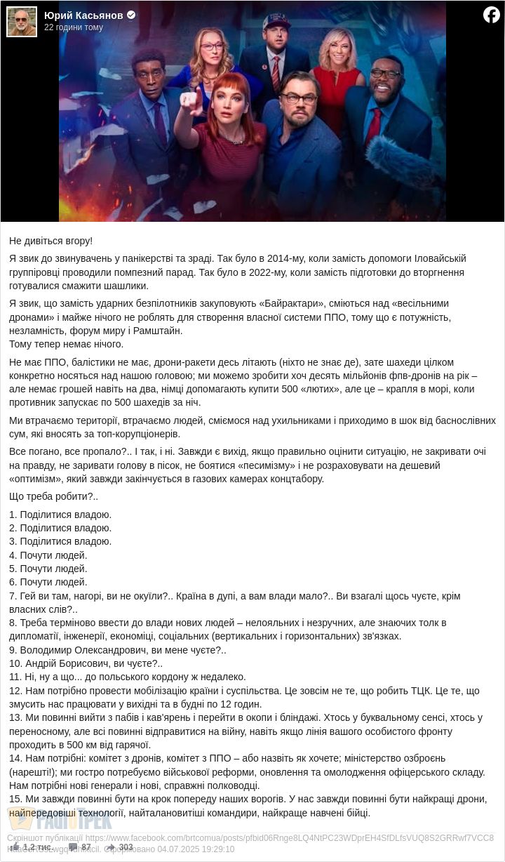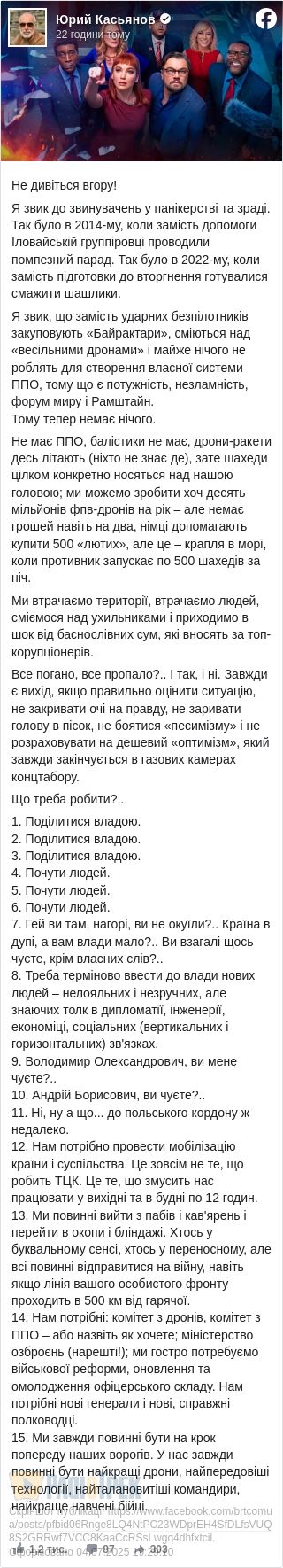 Юрій Касьянов, дивлячись на все це оприлюднив Звернення