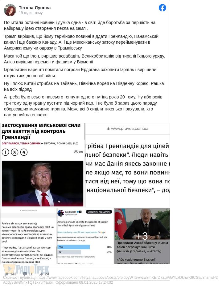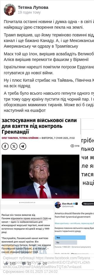 Трамп вирішив, що йому терміново повинні віддати Гренландію, Панамський канал і ще бажано Канаду. А, і ще Мексиканську затоку перейменувати в Американську чи одразу в Трампівську