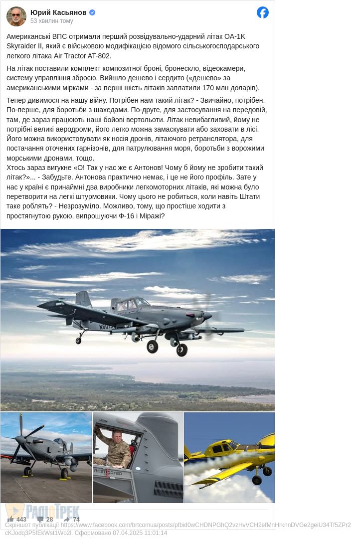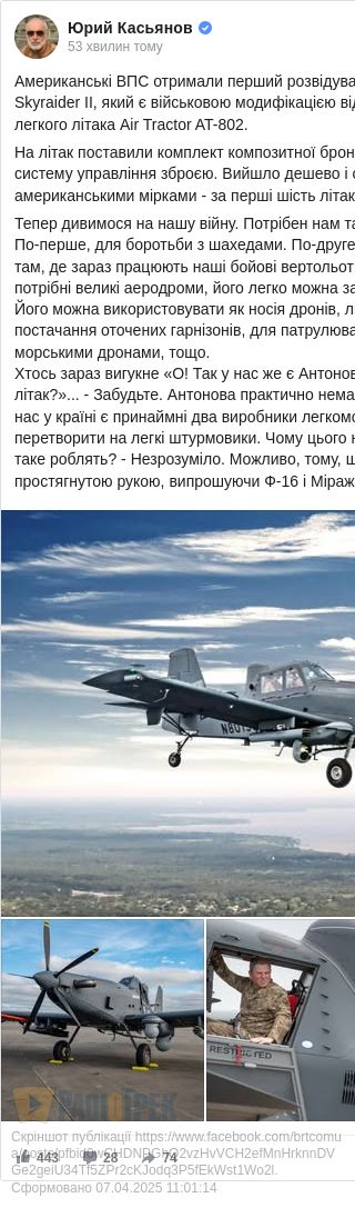 Зате у нас у країні є принаймні два виробники легкомоторних літаків, які можна було перетворити на легкі штурмовики.