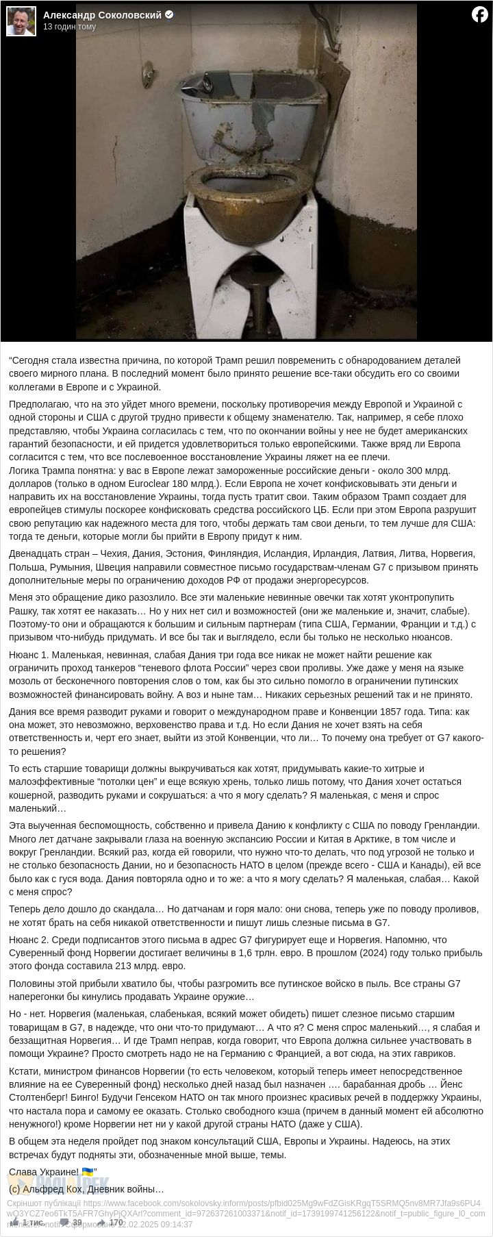Но – нет. Норвегия (маленькая, слабенькая, всякий может обидеть) пишет слезное письмо старшим товарищам в G7, в надежде, что они что-то придумают… А что я? С меня спрос маленький…, я слабая и беззащитная Норвегия… И где Трамп неправ, когда говорит, что Европа должна сильнее участвовать в помощи Украине? Просто смотреть надо не на Германию с Францией, а вот сюда, на этих гавриков.
