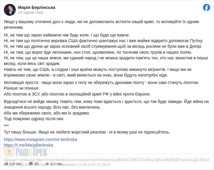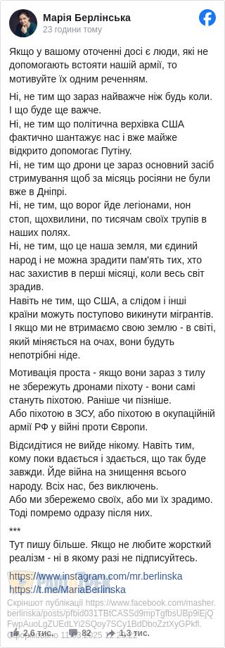 Марія Берлінська вкотре видає базу: її звернення до українців у тилу розходиться нині тисячами рпостів.