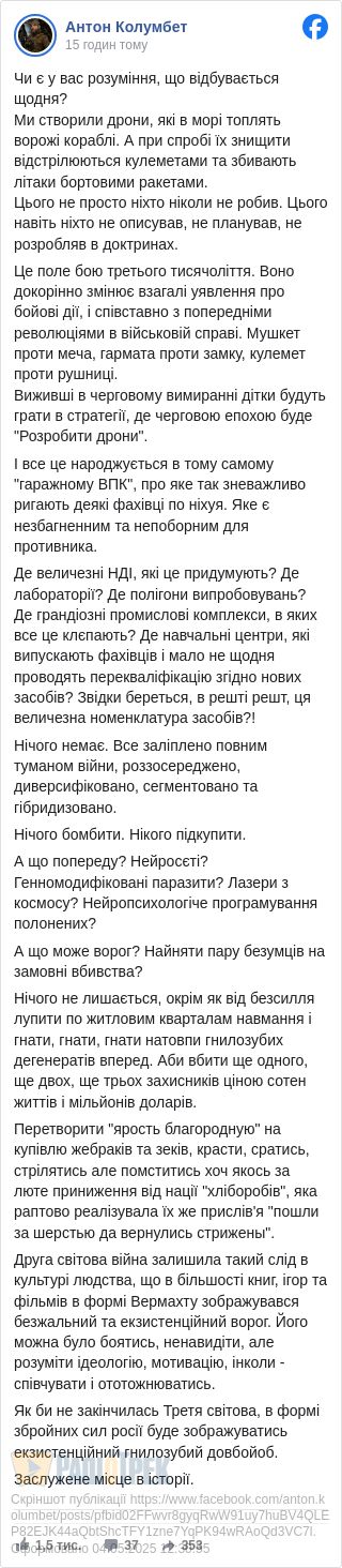 Нижче подаємо допис на споріднену тему від Антона Колумбета: