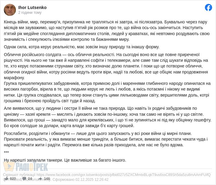 «Добре, що запалали танкери. Це важливіше за багато що інше» (с)