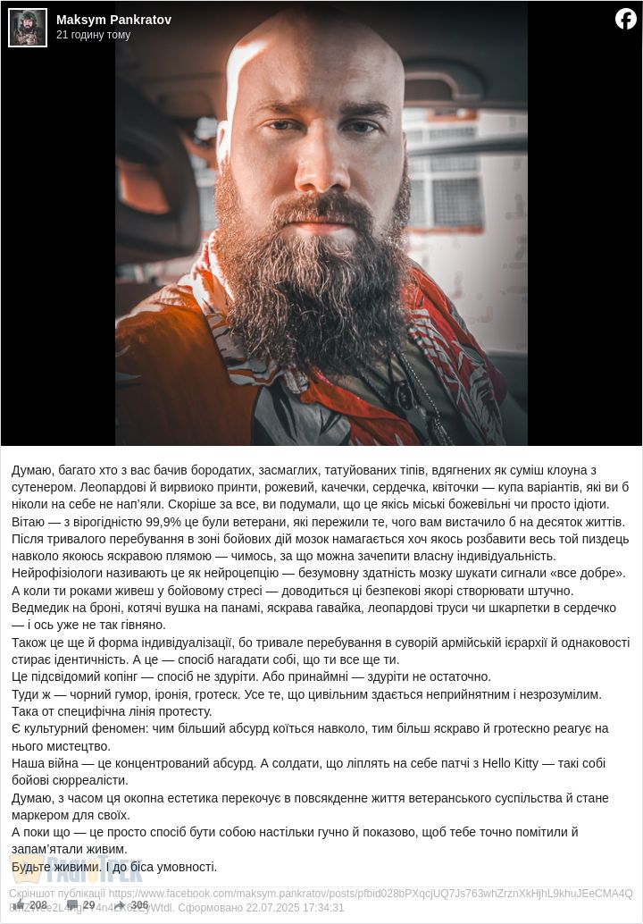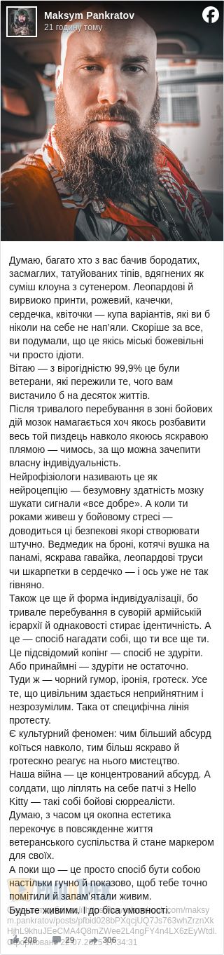 Подаємо нижче ФБ-допис Максима Панкратова: його зараз активно репостять військові та... психологи: