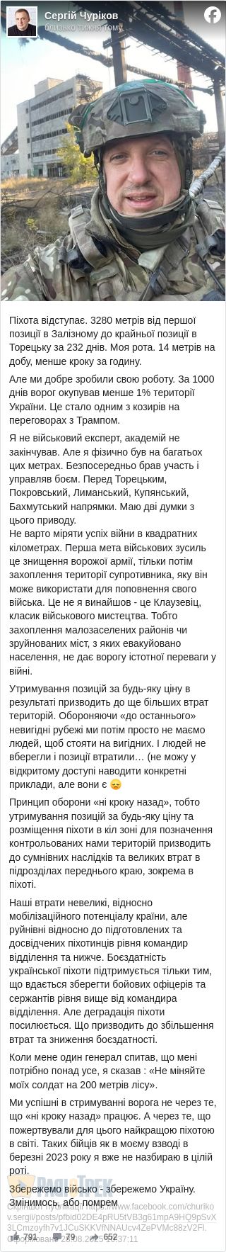«Не міняйте моїх солдат на 200 метрів лісу, - Сергій Чуріков, - Ми втрачаємо найкращу піхоту у світі» (ФОТО)