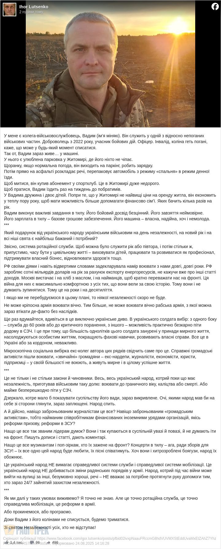 Це не тільки і не стільки закони й чиновники. Весь, весь український народ, котрий поки що має незалежність, приготував військовим таку долю: воювати до граничного віку, каліцтва або смерті. Або майже безперешкодно піти у СЗЧ.