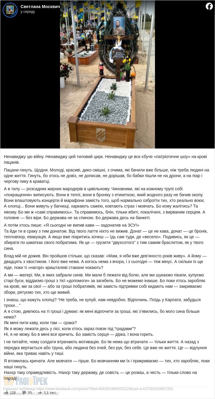 Світлана Москвич у березні втратила на війні сина – ще геть юного, молодого… Можна сказати, що її вустами промовляє біль, але…