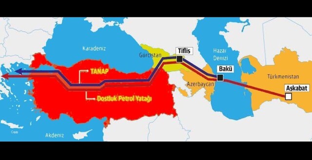 Тобто? А коли і ким побудований газопровід по дну Каспія, як на карті? Чи газ будуть робити скрапленим і возити через Каспій газовозами?