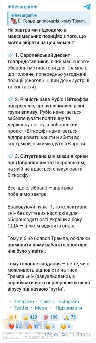 Багато хто (і я в тому числі) пов’язують дозвіл на продаж озброєння Європі для України з діяльністю президента Фінляндії, також зі сприянням укладення рамки торгівельної угоди між ЄС та США і тим, що Трамп почав самостійно хоча б «консультуватися з ЄС» щодо московії.