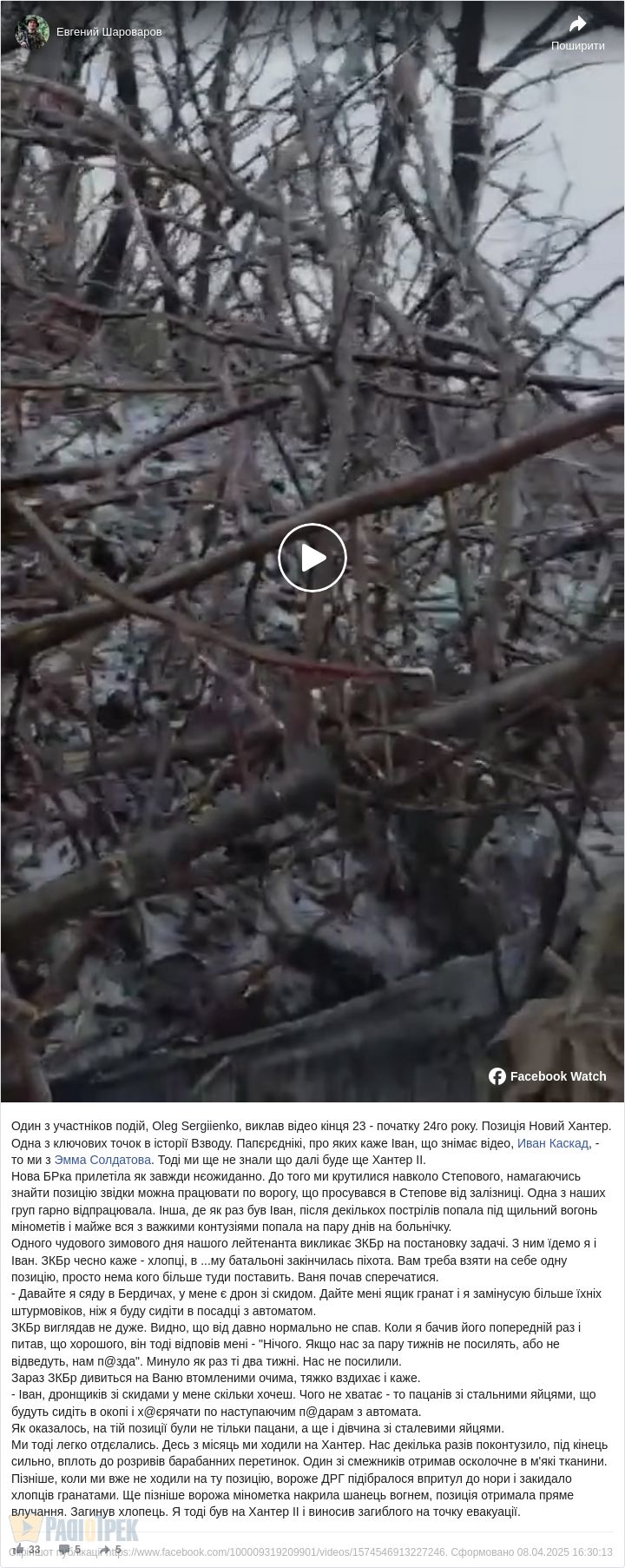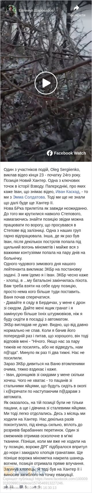 Учасник тих подій Oleg Sergiienko, виклав відео кінця 23 – початку 24го року. Позиція Новий Хантер. Одна з ключових точок в історії Взводу.