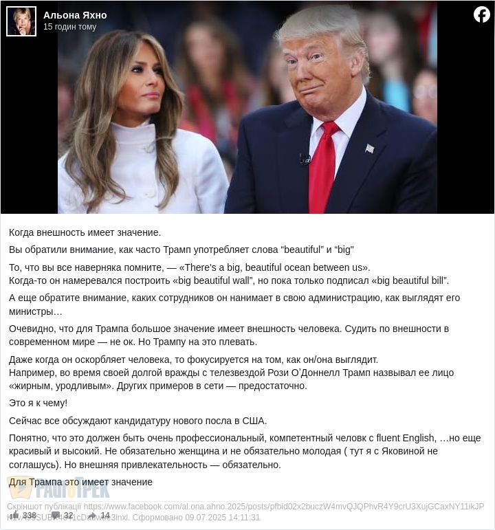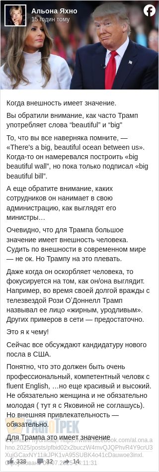 Як любить Трамп: новий український посол до США має бути «Big and Beautiful» (ФОТО)