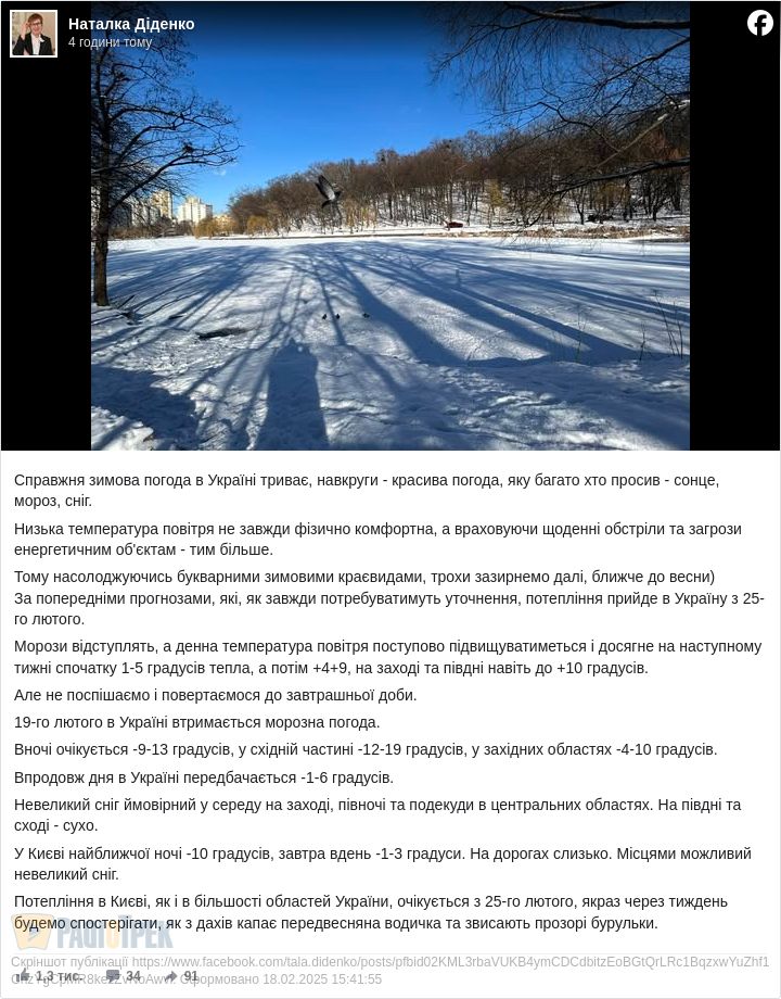 - За попередніми прогнозами потепління прийде в Україну з 25-го лютого.