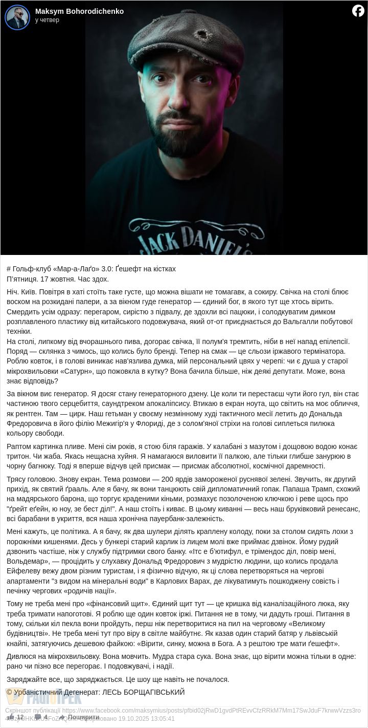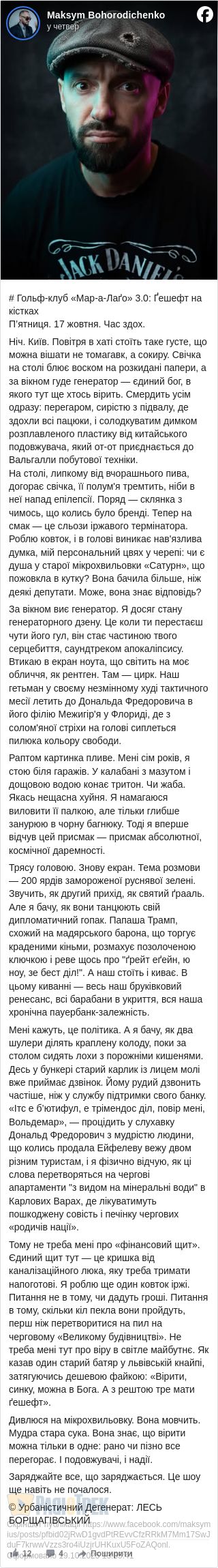Нижче, як приклад, подаємо один з його свіжих дописів.