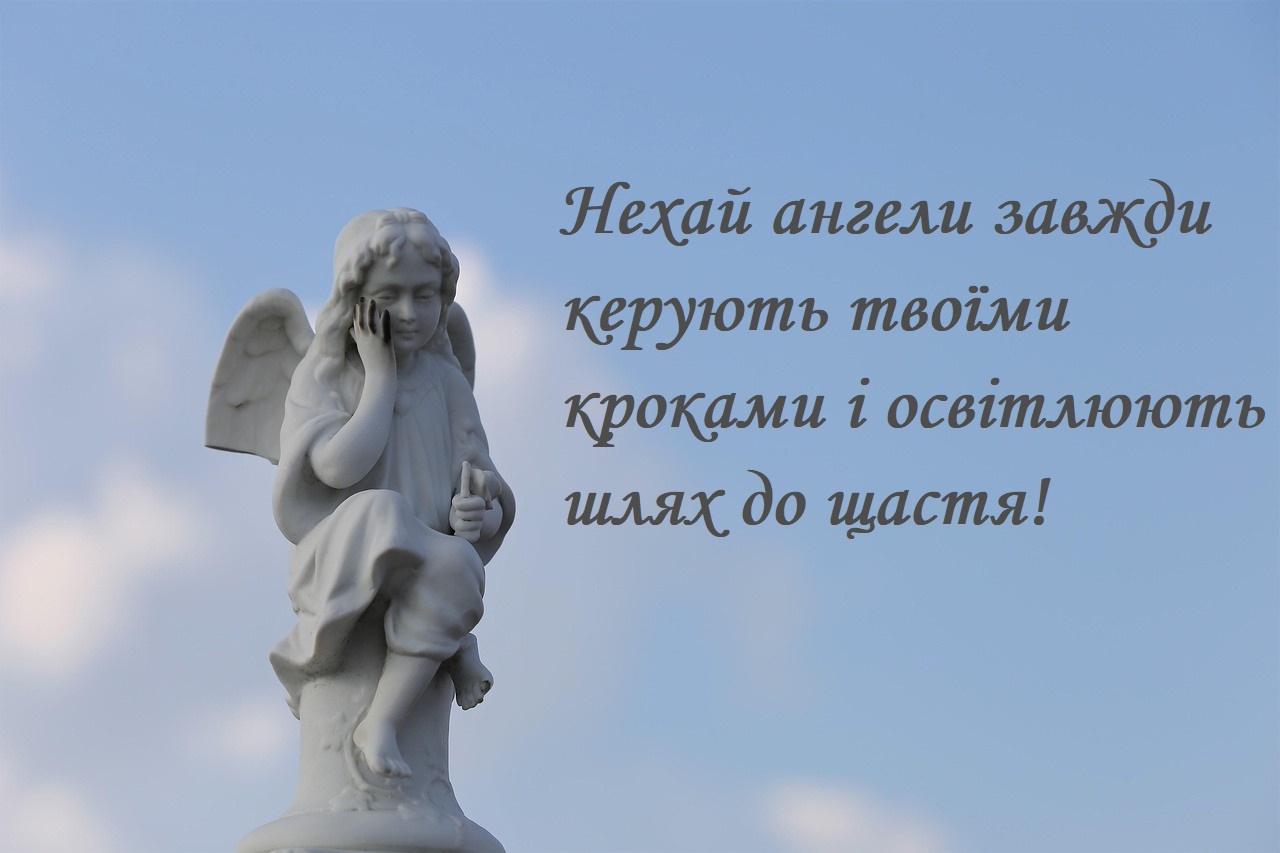 Прийми мої найщиріші вітання з Днем твого небесного покровителя. Ти не бачиш свого Ангела, але він точно десь поруч. Він поруч кожну мить і кожну годину. Цінуй його, молися йому і тоді в твоєму житті буде тільки радість і щастя. З Днем ангела!