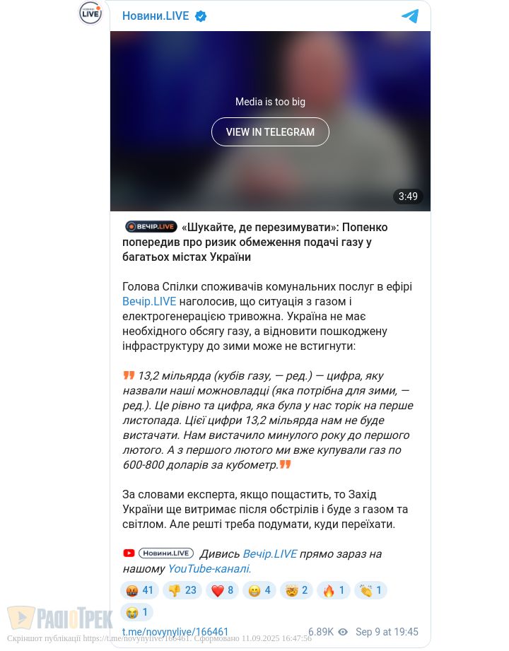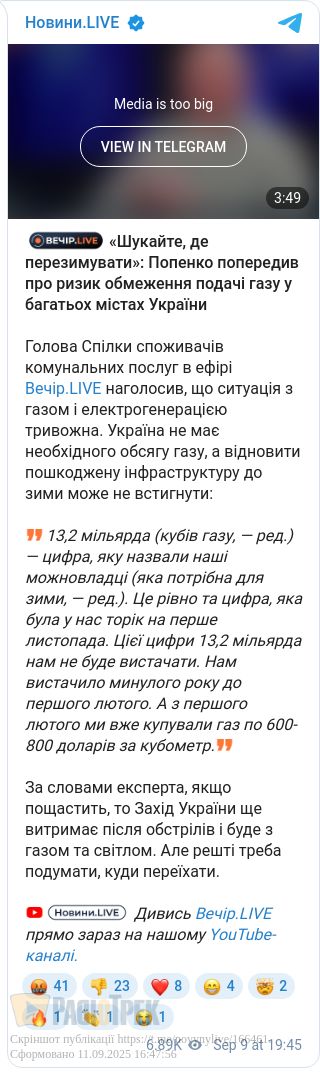 Українців попередили про можливі серйозні труднощі з опаленням у прийдешню зиму. Голова Спілки споживачів комунальних послуг Олег Попенко в ефірі «Новин.LIVE» заявив, що ситуація в енергетиці й газопостачанні залишається критично складною, і мешканцям міст варто заздалегідь продумати, де вони зможуть перечекати холодний сезон.