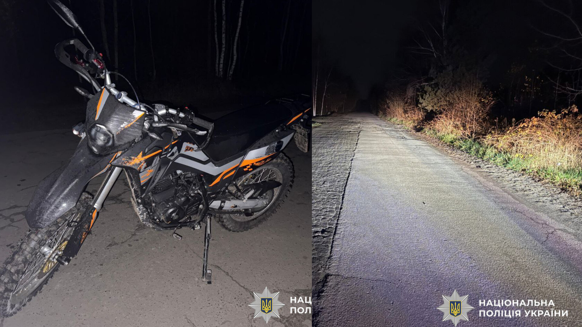 Мотоцикл був незареєстрований, а кермувальник не мав прав.