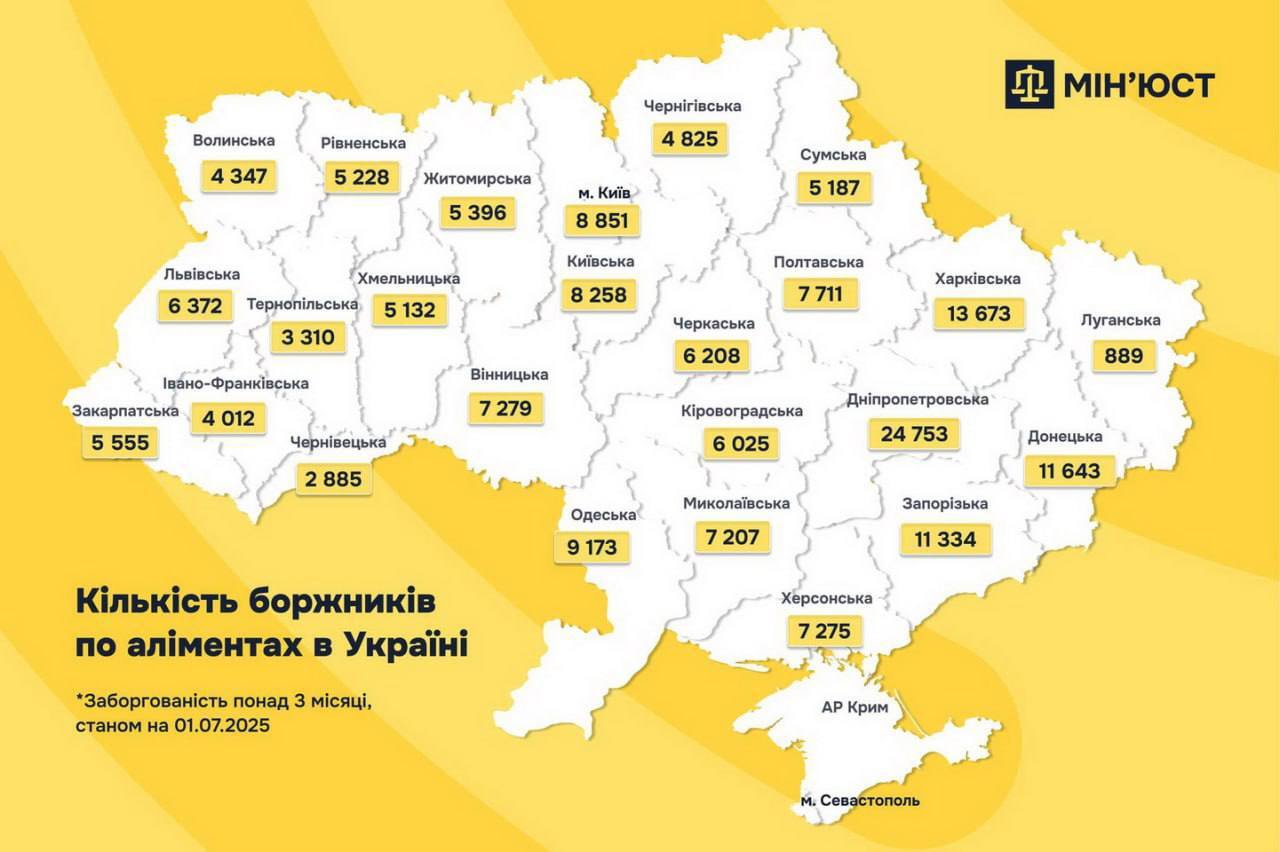 Загалом у липні цього річ перебуває понад 170 тисяч осіб, які понад три місяці не виконують рішення суду щодо сплати аліментів.